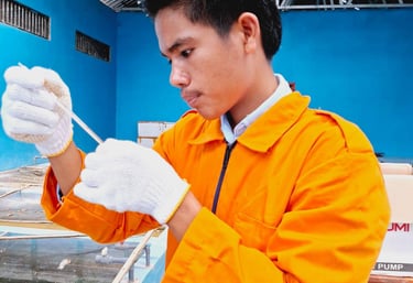 Kami mendukung siswa dengan fasilitas lengkap dan pengajaran yang berkualitas untuk mencapai tujuan karir. fasilitas terdiri dari simulator kapal, teaching factori, kolam ikan, laboratorium komputer.