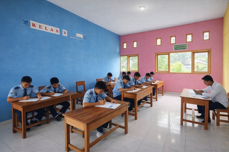 Pengawas ujian memastikan seluruh proses berjalan sesuai dengan aturan yang telah ditetapkan. Taruna-Taruni mengerjakan soal ujian dengan serius dan penuh tanggung jawab sebagai bentuk evaluasi terhadap hasil belajar selama satu semester.